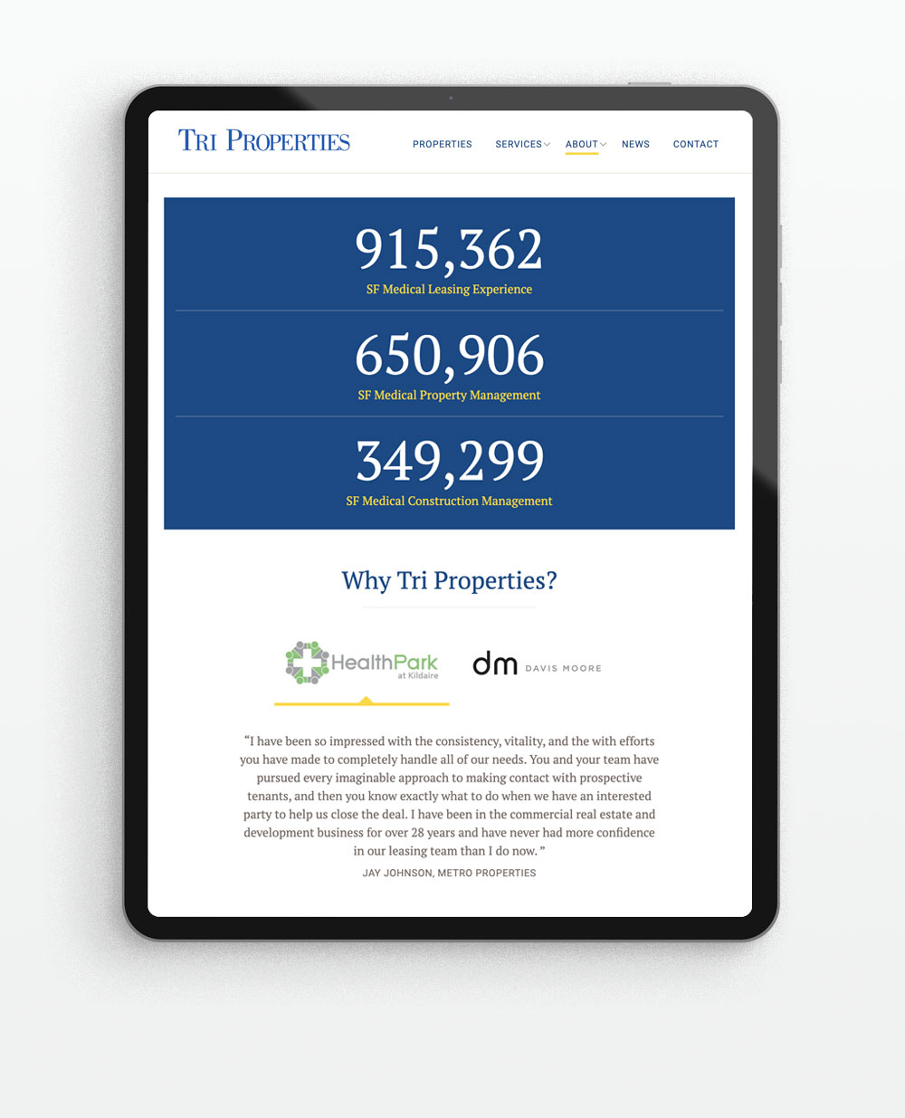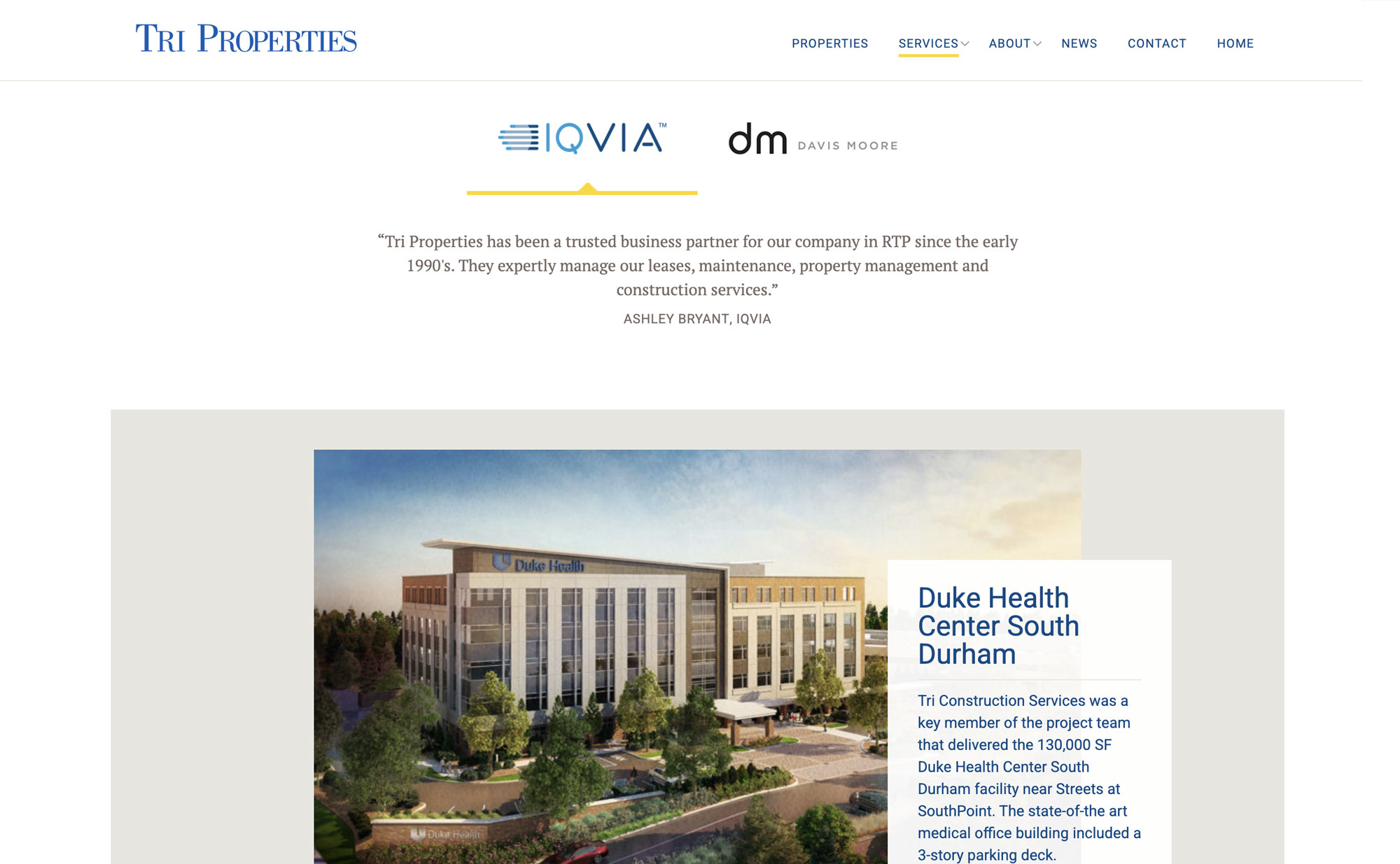 Mobile-friendly website design and custom WordPress development for commercial real estate firm in Raleigh, NC