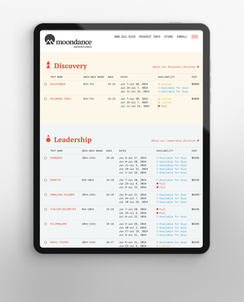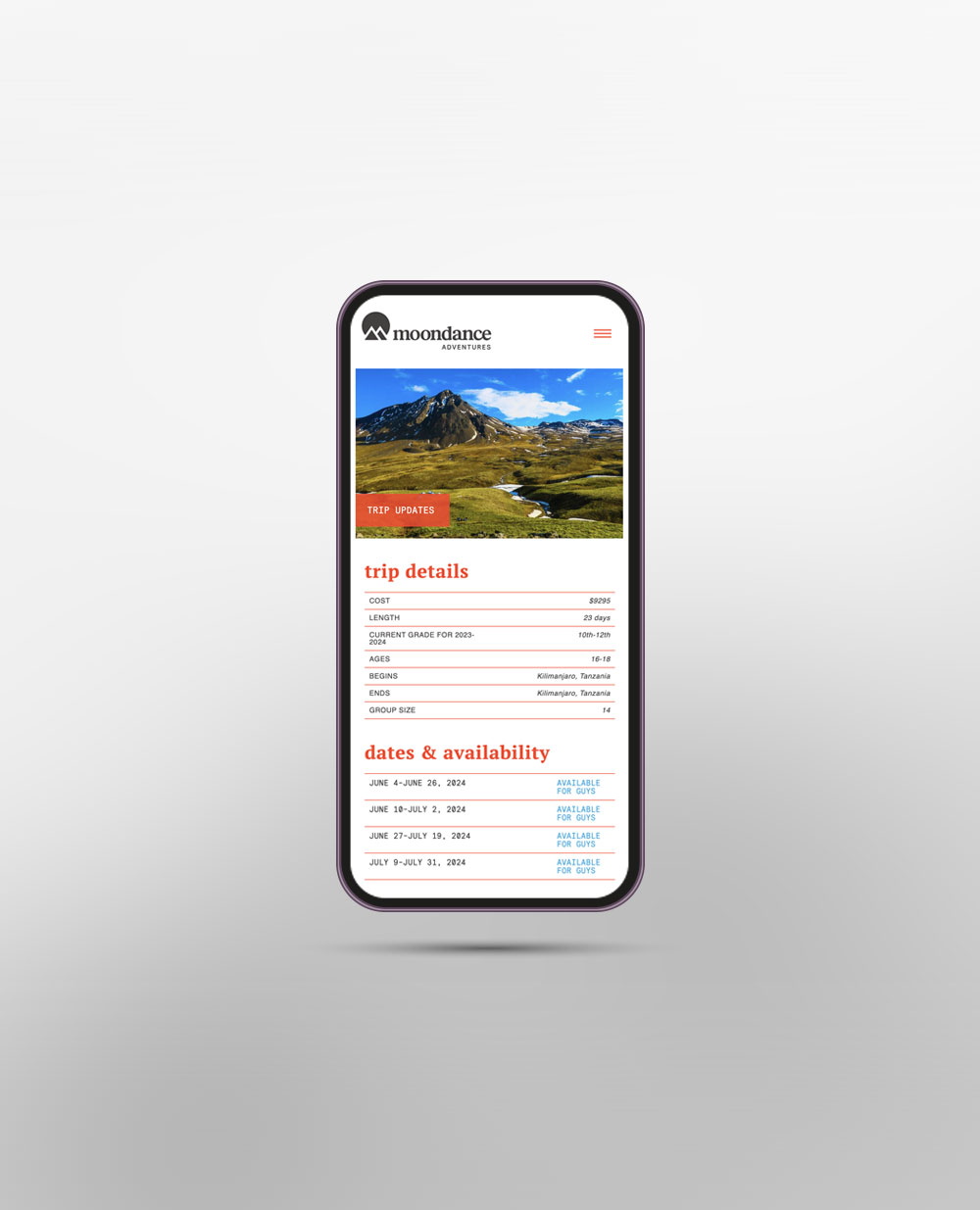 Custom responsive website design and WordPress development for teen travel adventure company in Nashville, TN